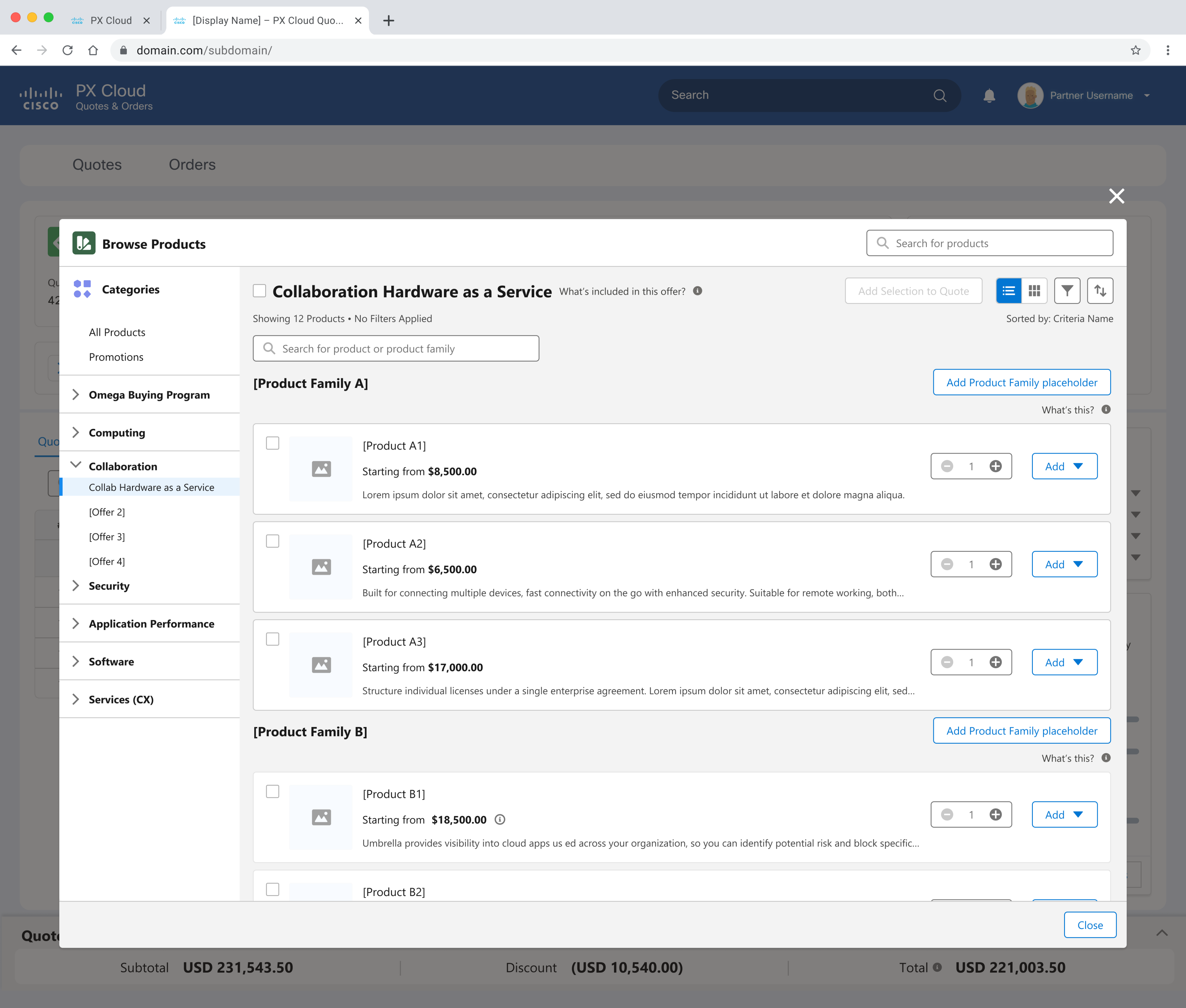 We replaced static SKUs with a dynamic, category-based catalog — adding visuals, guided configuration, and a more scalable way to support Cisco’s evolving product lineup.