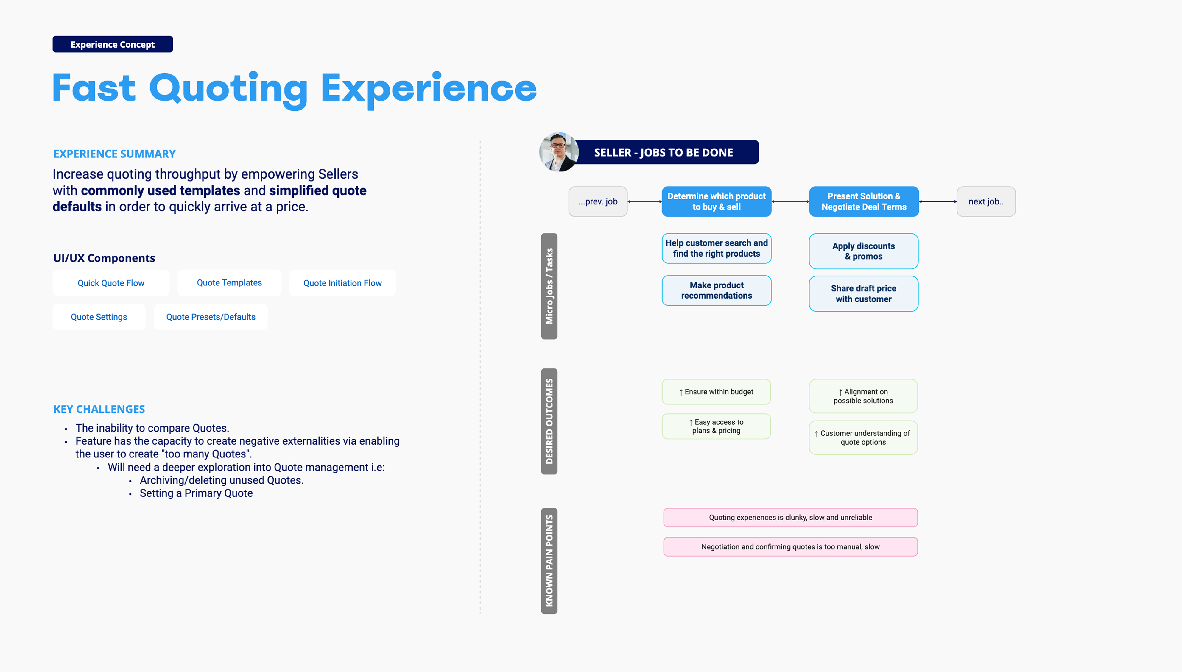 We revisited the Seller JTBD framework post-P0 to refocus P1 around speed, clarity, and confidence — not just quote completion.