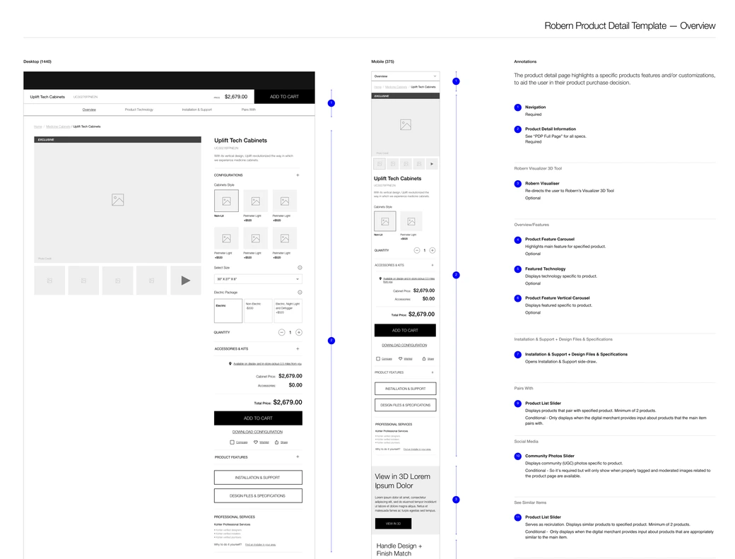 Deliverables: Design system, mobile-first e-commerce redesign, annotated handoff docs